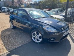 Kia Pro Ceed 3 1.6 Automatic 3 door finished in black metallic with grey cloth interior, Alloy wheels, electric windows, remote central locking, electric door mirrors, split folding rear seats, air conditioning, front & side airbags, USB Port, C/D Radio player, Multifunctional steering wheel, heated front windscreen, ABS, well looked after family car.