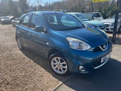 Nissan Micra 1.2 Acenta 5 door Hatchback finished in blue metallic with grey cloth interior, Alloy wheels, remote central locking, electric windows, ABS, split folding rear seats, electric door mirrors, traction control, CD/Radio player with bluetooth, air conditioning, cruise control, USB Port, front & side airbags, 2 keys, full service history, service pack, cheap road tax.