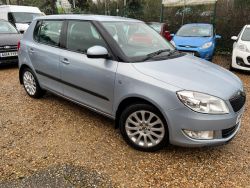 Skoda Fabia 1.2 TSI Elegance 5 door Hatchback finished in blue metallic with grey cloth interior, Alloy wheels, electric windows, ABS, Air conditioning, remote central locking, electric door mirrors, split folding rear seats, CD/Radio player, cruise control, front & side airbags, rear parking assist, 2 keys, book pack, full service history.