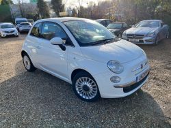 Fiat 500 1.2 Lounge 3 door Hatchback finished in white with red leather interior, Alloy wheels, electric windows, remote central locking, CD/Radio player with bluetooth, Air Con, electric door mirrors, multifunctional steering wheel, split folding rear seats, front & side airbags, height adjustable drivers seat.